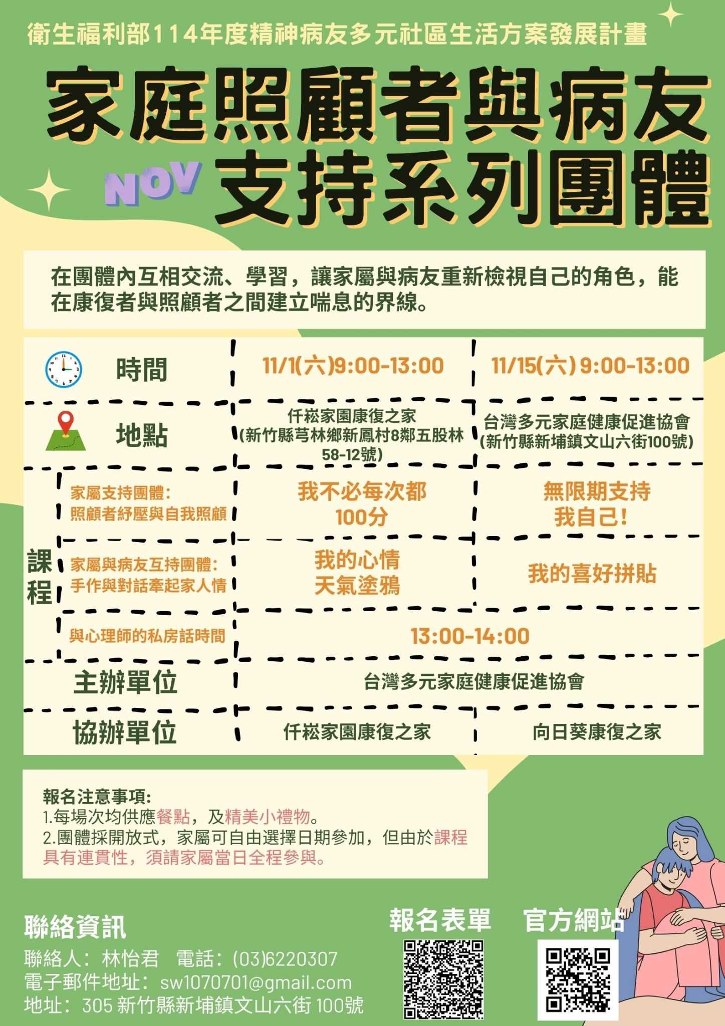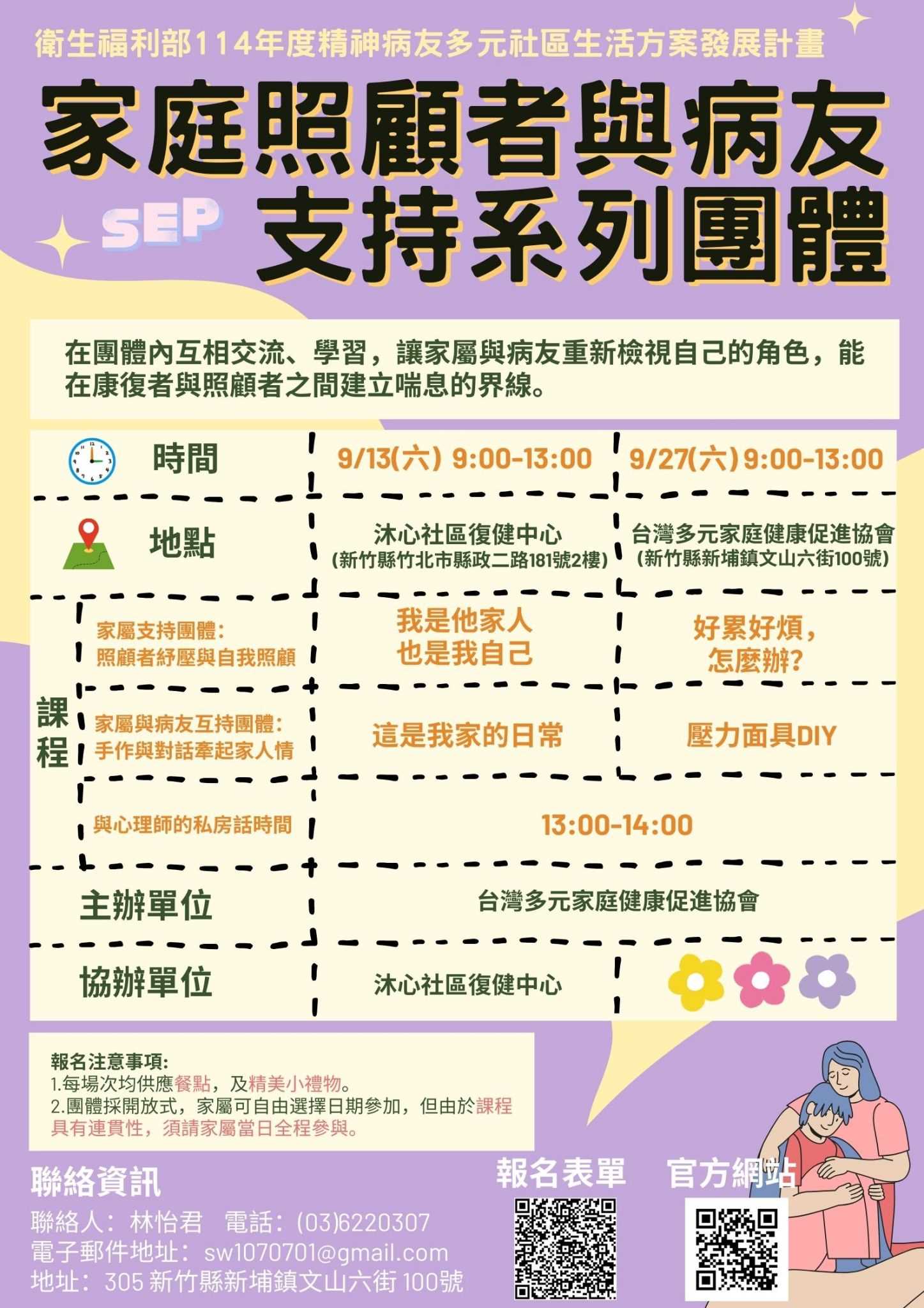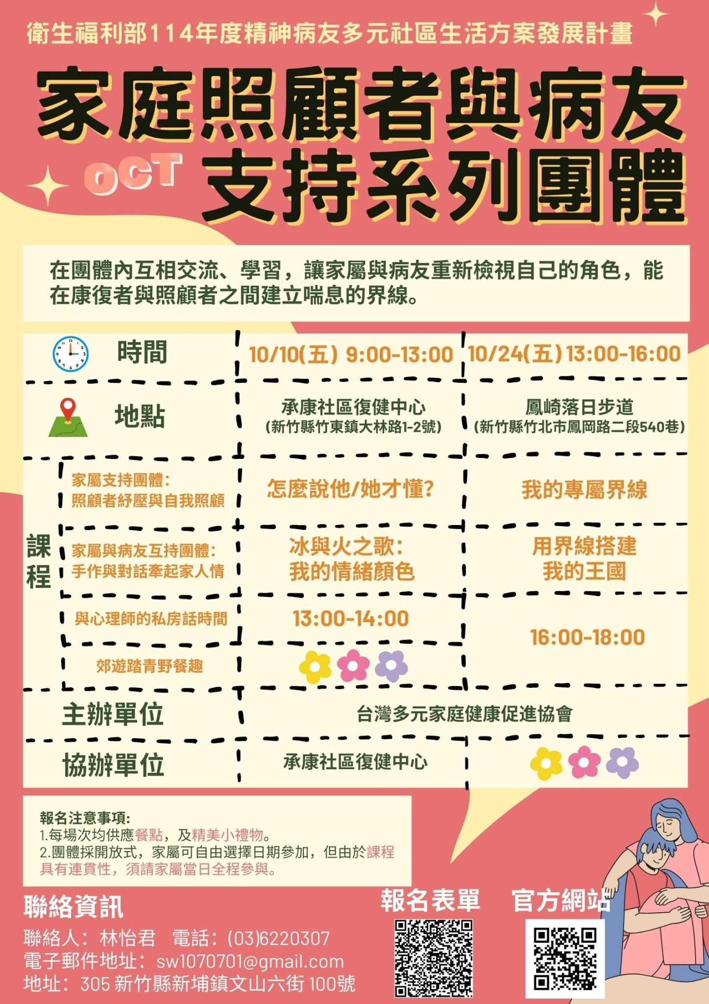 因課程報名踴躍且場地限制, 有興趣的民眾請選擇9月27日、10月24日辦理之場次 #精神病友多元社區生活方案發展計畫 #去標籤化 #台灣多元家庭健康促進協會